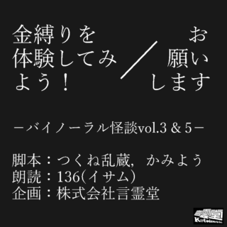 ・登録者13万人以上、総再生数2億回を超えるYouTubeチャンネル「怖い話 怪談 朗読」にて怪談朗読を行っている言霊堂の136(イサム)(X:@IsAM0136)による【バイノーラル怪談】第六&七弾登場(再生時間:6分49秒+17分33秒)